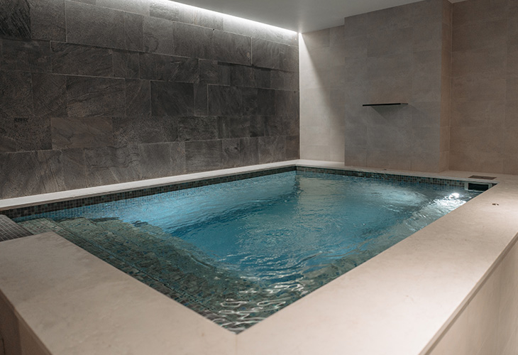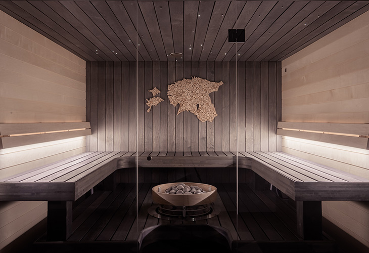 蒸気をサウナ室内に充満させたスチームサウナ。暖かい蒸気によってじんわりと身体に熱が伝わり、良質な汗をかくことができる。